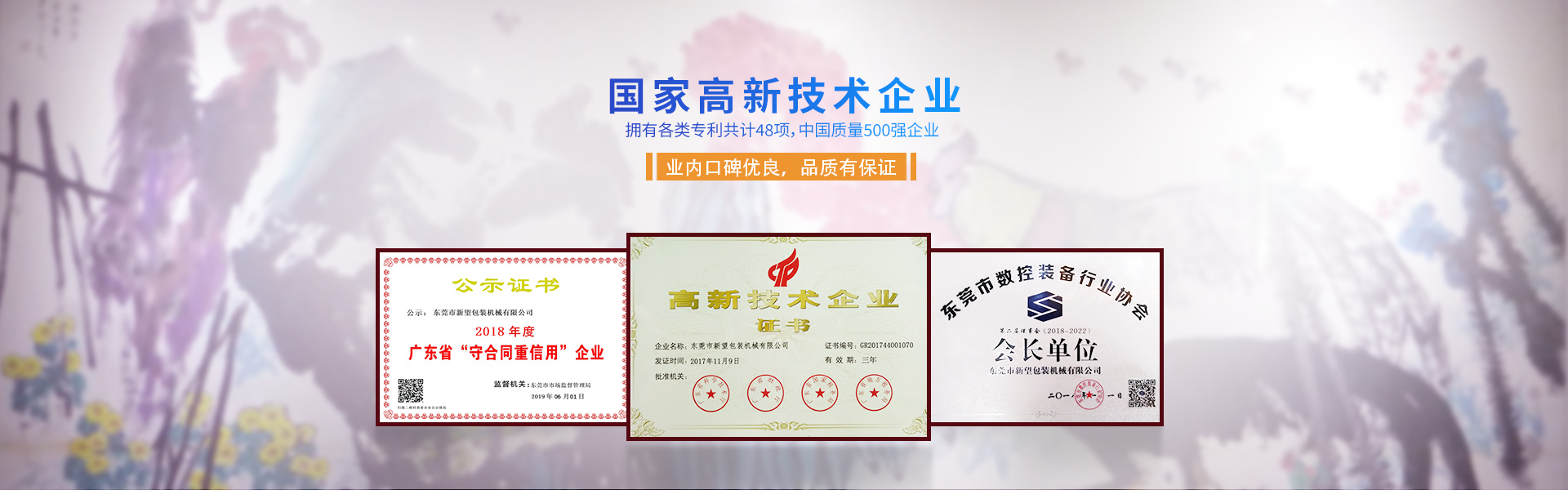 新望機械成立于1998年,位于東莞市東部工業(yè)園區(qū)的中心地帶——企石鎮(zhèn)東平村,交通方便、環(huán)境優(yōu)美舒適、視野開闊。公司注冊資本2000萬元,擁有辦公室、廠房等18,000多平方米。已通過ISO9001:2015國際質量管理體系認證,擁有國家各類專利共計58項。是東莞市企石鎮(zhèn)工商聯(lián)副會長單位、東莞市企石鎮(zhèn)文學藝術界聯(lián)合會副主席單位、東莞市環(huán)保包裝行業(yè)協(xié)會副會長單位、東莞市數(shù)控裝備行業(yè)協(xié)會第二屆會長單位、廣東省包裝技術協(xié)會常務理事單位、廣東省膠粘劑行業(yè)協(xié)會理事單位、廣東省著名商標企業(yè)、國家高新技術企業(yè)。